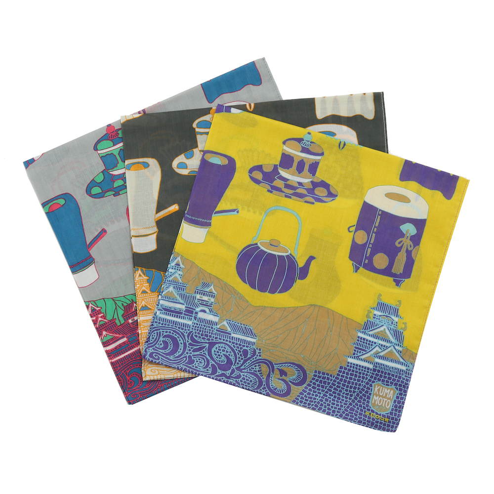구마모토성을 테마로 그려진 손수건.